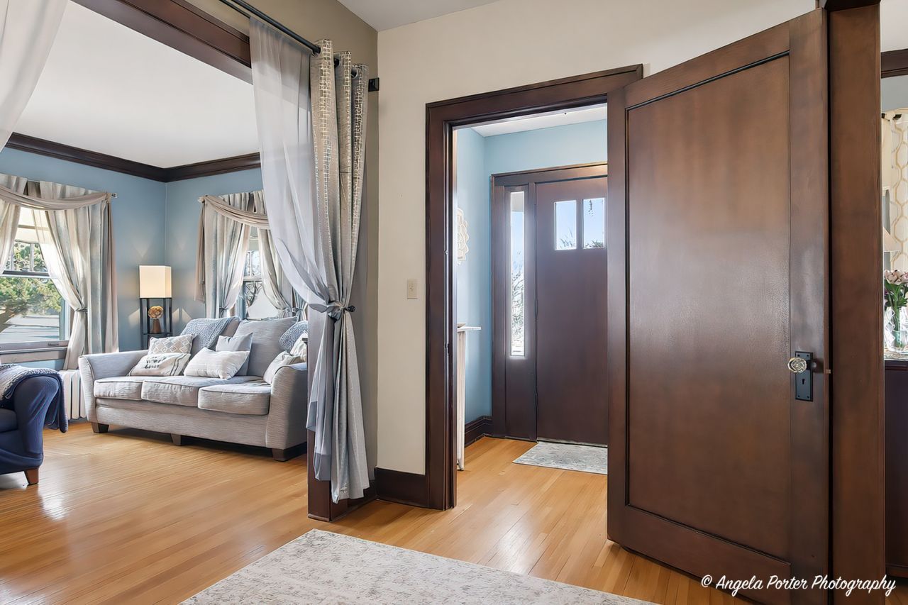 Step into a rare opportunity to own a landmark residence offering exceptional income and investment potential, blending timeless architectural character with extensive modern upgrades. Set on a beautifully landscaped, park-like lot in a premier location near the Riverwalk, this stately home offers generous living and entertaining spaces including elegant living and dining rooms with crown molding and high-end baseboards, a living room fireplace, sunroom, and dedicated first-floor office/den. The fully remodeled eat-in kitchen features radiant electric heated floors, stylish backsplash, and high-end appliances, complemented by a convenient laundry chute. The second floor offers multiple bedrooms-most with hardwood flooring-served by a remodeled full bath, while a second full bathroom in the finished basement adds flexibility along with additional usable living space. Outdoor highlights include a quiet, fenced yard on nearly 1/2 acre with mature landscaping, stone patios, and a newly built tool shed, creating a true park-like setting. An expansive driveway offers generous off-street parking for multiple vehicles. Window treatments and a modern TV on swivel arm are included. Major improvements include modern electrical, newer Copley roof, updated plumbing, professionally maintained boiler system with radiators and individual temperature controls, newer appliances, full blacktop driveway replacement, new garage door and siding, sealed garage flooring, ADT security system, brand-new carpet (2025), and convenient laundry. Ideally located near schools and just steps from downtown McHenry with exceptional walkability to shops, dining, parks, community events, trail access, marina, biking, and water recreation, this property presents rare potential for a bed & breakfast, live/work concept, or long-term investment in one of the area's most desirable in-town locations.